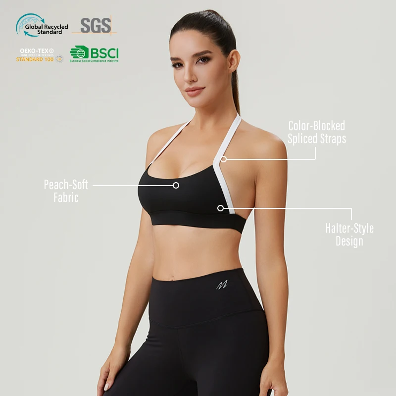 HUCAI Custom 75%Nylon 25%Spandex High Quality Halter-Style Backless Stretch Halter-Style Sports Bra